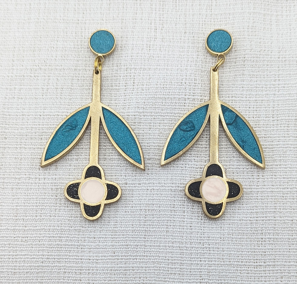 "While at first I was drawn to the artistry of the gravity-defying shapes of Asawa’s work, after reading about her I discovered she possessed an admirable human spirit as well. I translated the suspended volumes of her wire sculptures into jewelry by outlining both the silhouettes and interior spaces in brass, while the bold colors make them unmistakably Clouds+Ladders. This collection is both a tribute to Asawa’s singular vision and an invitation for the wearer to joyfully embrace their own uniqueness." -Kate, Designer/maker, Clouds+Ladders Jewelry